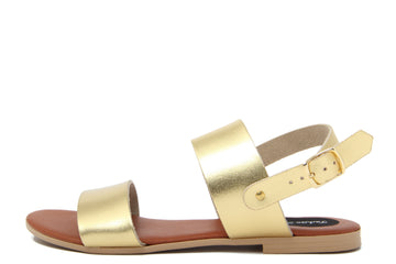 sandalo in pelle con doppia fascia, laccetto in pelle con fibbia regolabile, tacco rettangolare e punta stondata.