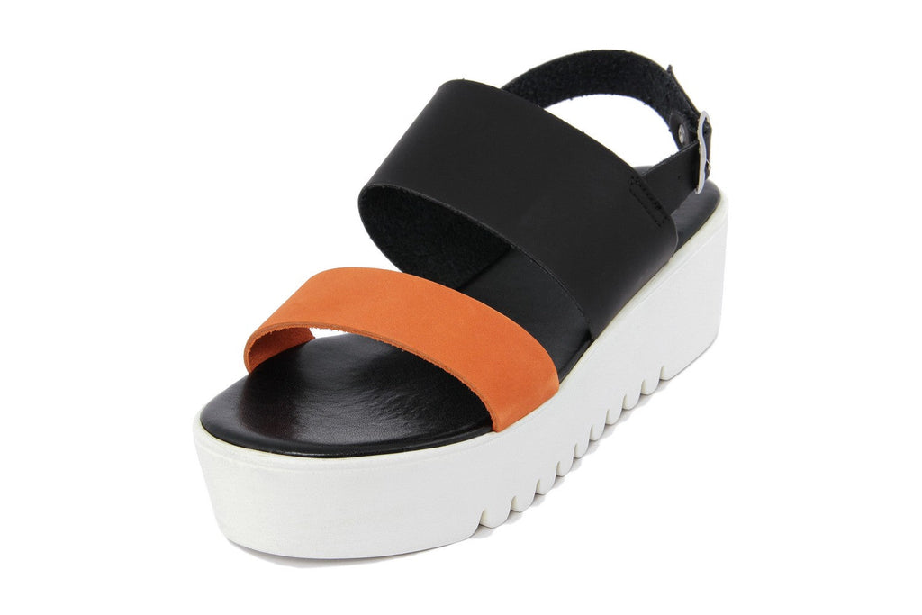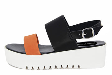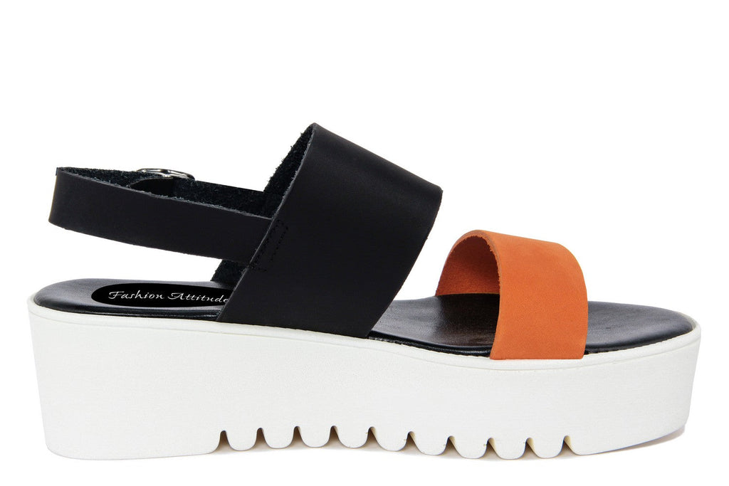 sandalo con zeppa in pelle con chiusura laterale esterna regolabile con fibbia