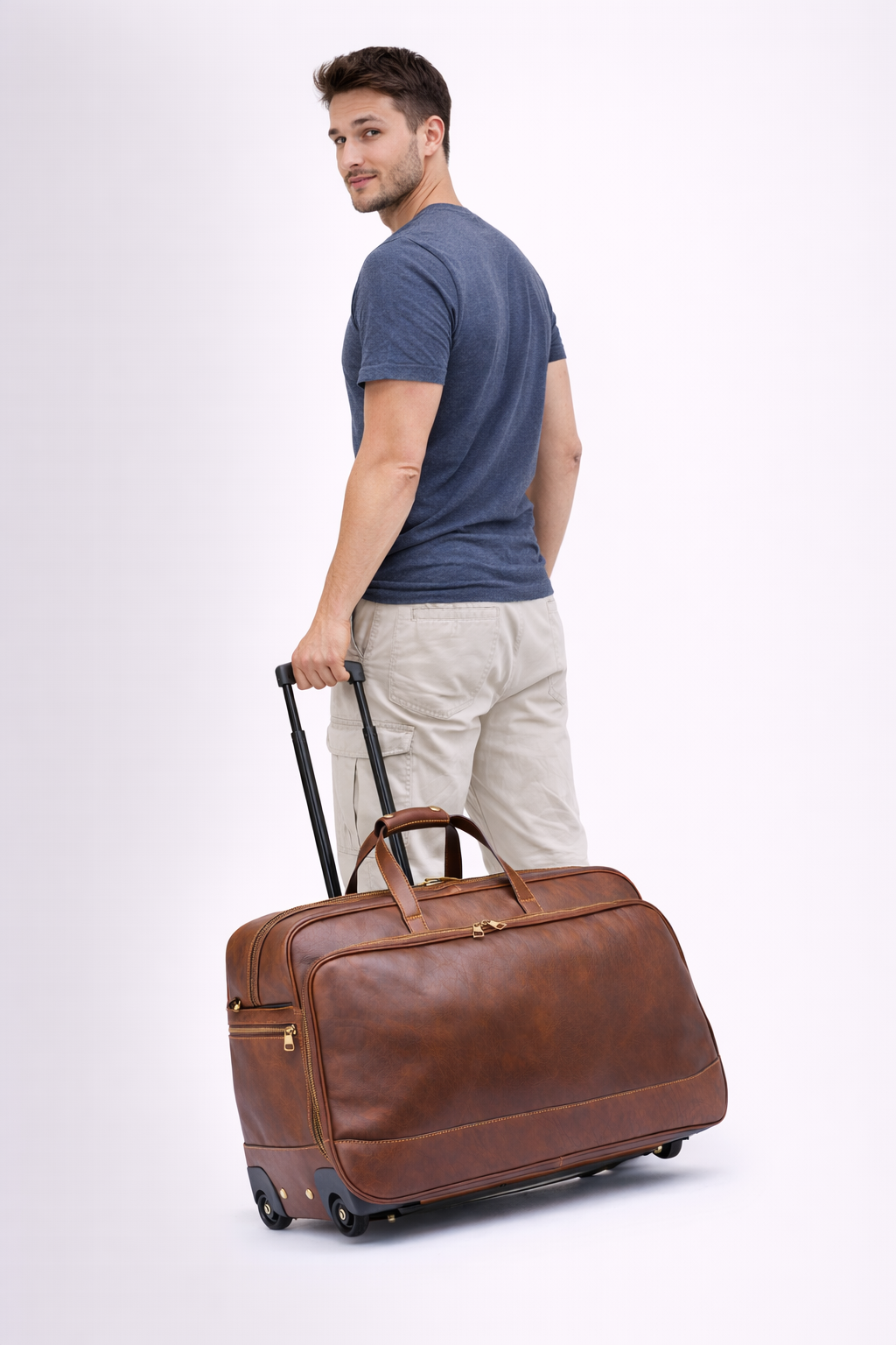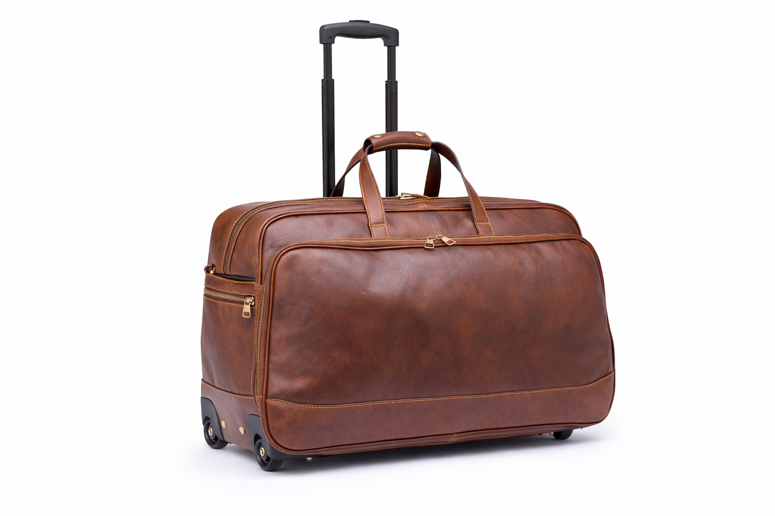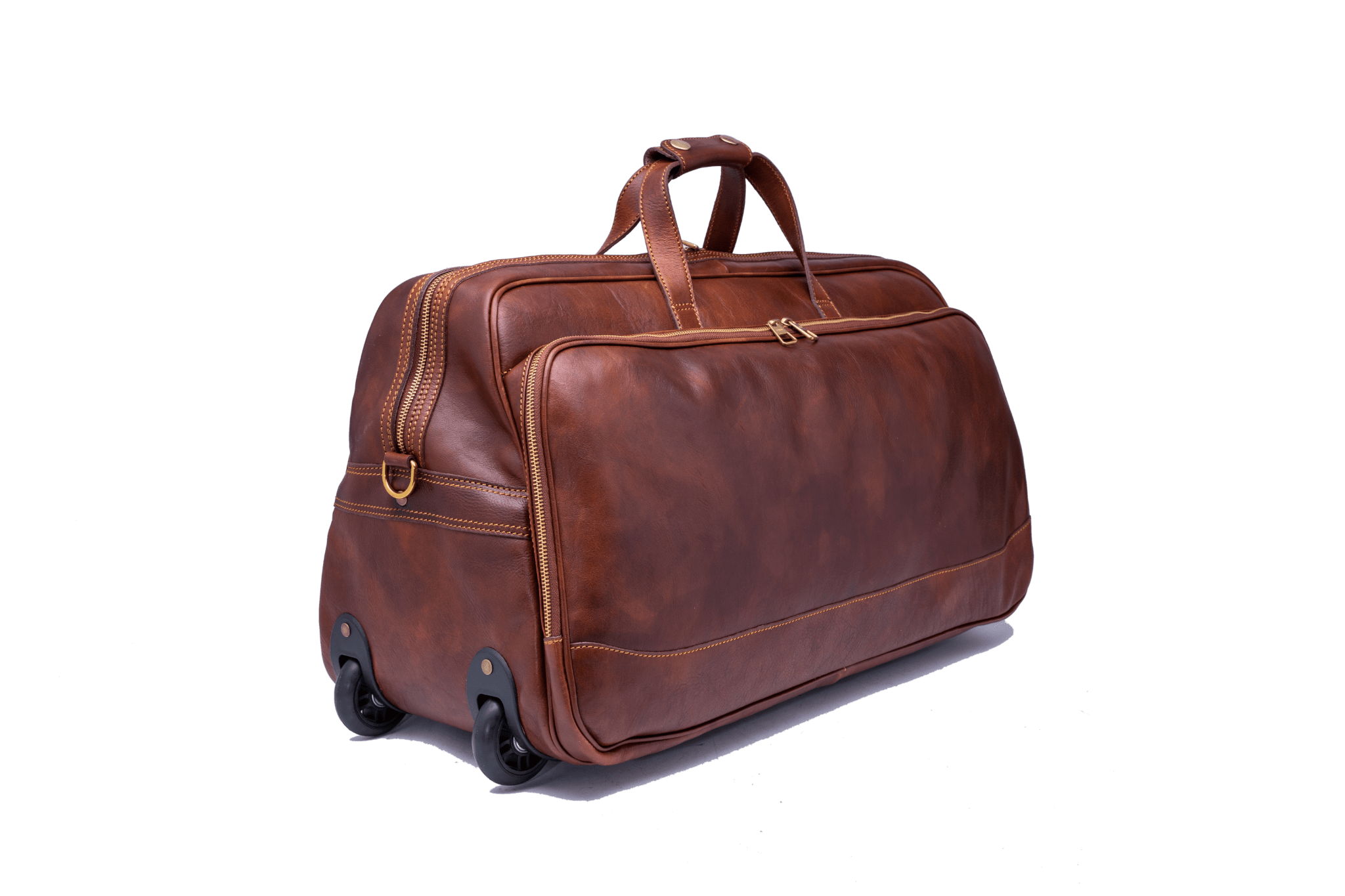 Borsa Trolley 4088 in vera Pelle Tamponata conciata al Vegetale 100% Made in Italy, con doppio manico, dotata di manico telescopico e ruote, fondo con piedini in metallo, tasca interna ed esterna con zip, chiusura esterna zip.