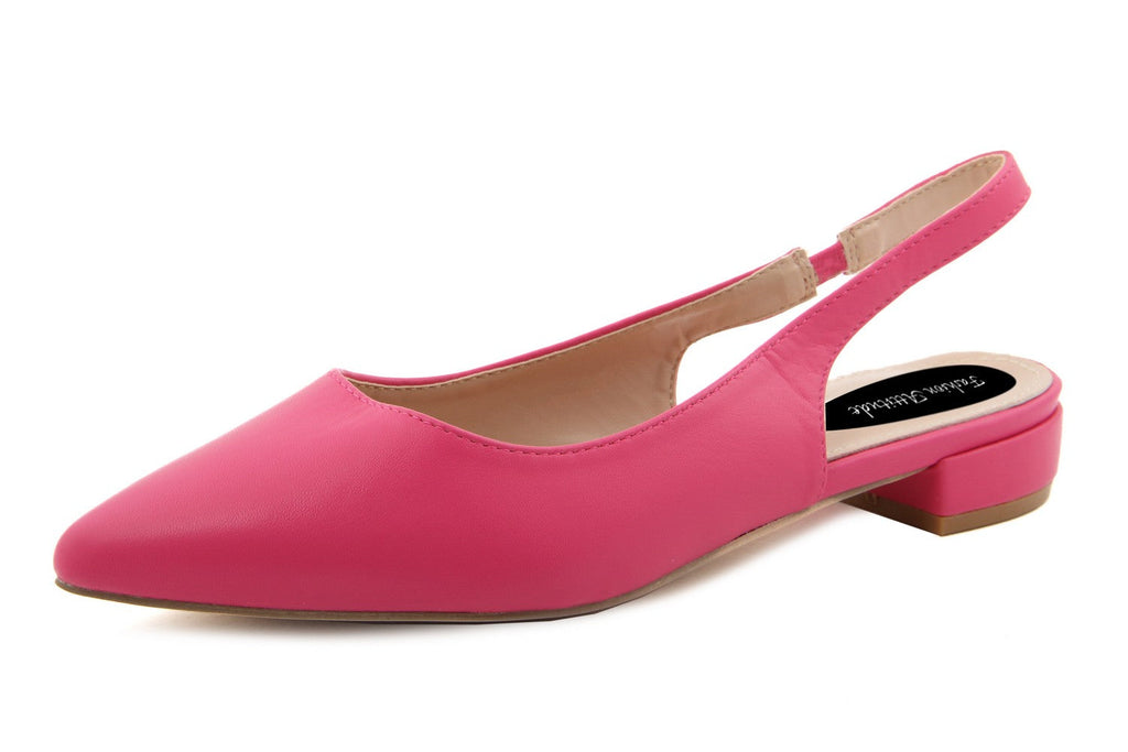 slingback con laccio elastico dietro la caviglia. , punta tringolare, tacco fasciato largo e basso in tono.