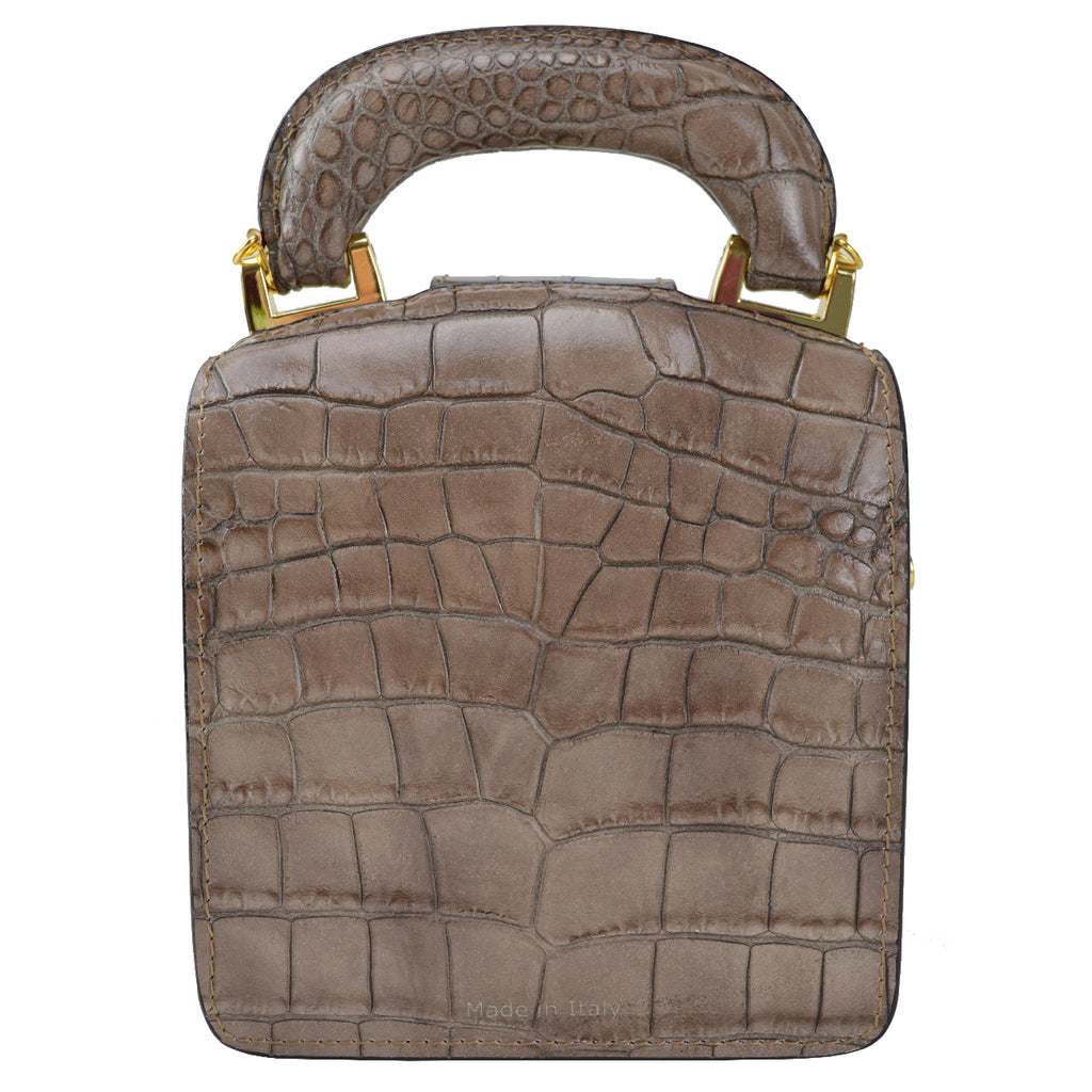 In Italian King type leather This bag in fine vegetable tanned and manually dyed leather has the characteristic of having a particular opening with zip, internal zip pocket, key closure and a nice courtesy light that turns off automatically after 30 seconds. It is also equipped with a comfortable removable shoulder strap. Cotton fleece cloth bag included. Made in Italy Product Information • Material Calfskin • Width 16 cm • Height 19 cm • Depth 9.5 cm • Handle/shoulder strap Leather covered metal • Hardware Gold plated • Closure Key lock • Color Assorted • Weight 0.800 kg • Usually ships within 24 hours • Status Available