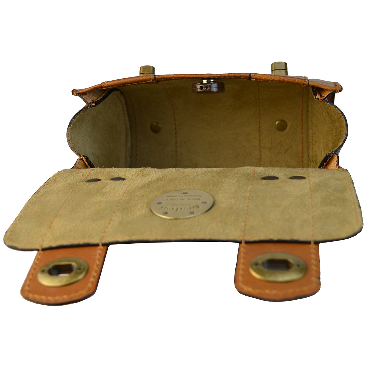 Pochette SanBernardo, by Pratesi, in real Italian leather. Made of certified calfskin, it comes from 100% artisanal workmanship. This ancient tanning that uses only natural products (tannin, tallow fat, etc.) is unique in the world and has never been reproduced. The garments made with this leather have the characteristic of aging over time, acquiring more and more charm day after day. The first polymerization was carried out by us, applying various waxes and other natural products, whose formula is secret. Precious and cared for in the smallest details, the Pochette SanBernardo elegantly accompanies every type of outfit. A classy bag, completely Made in Italy signed by the historic Florentine brand Pratesi. A design that combines class and versatility, SanBernardo is a shoulder bag with a twist lock, has a single large compartment. The metal parts are Bronze colored. Included: a detachable shoulder strap, and a cotton bag for storage. Available in various colors. Pratesi: when the quality of Made in Italy meets an exclusive and timeless design, since 1948.