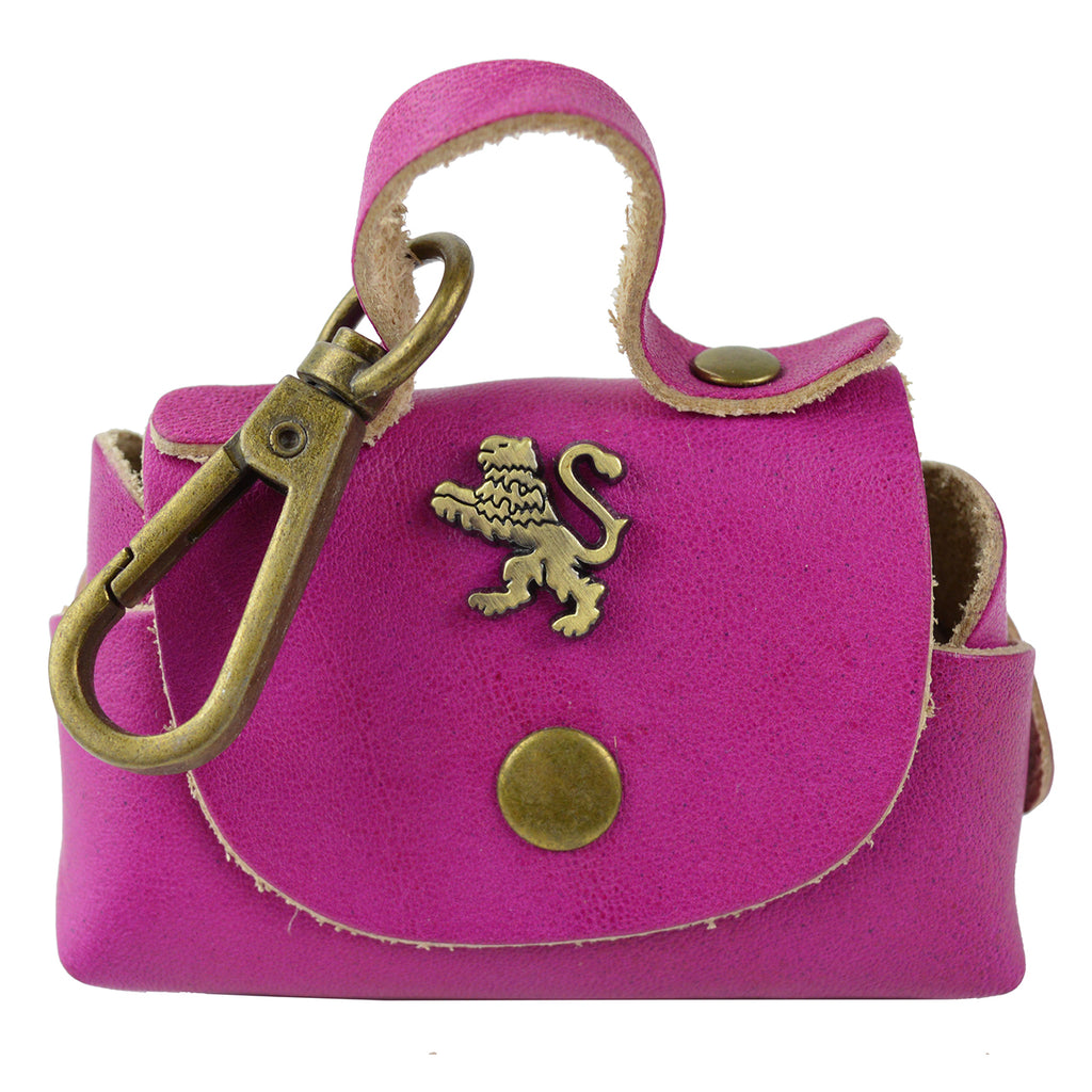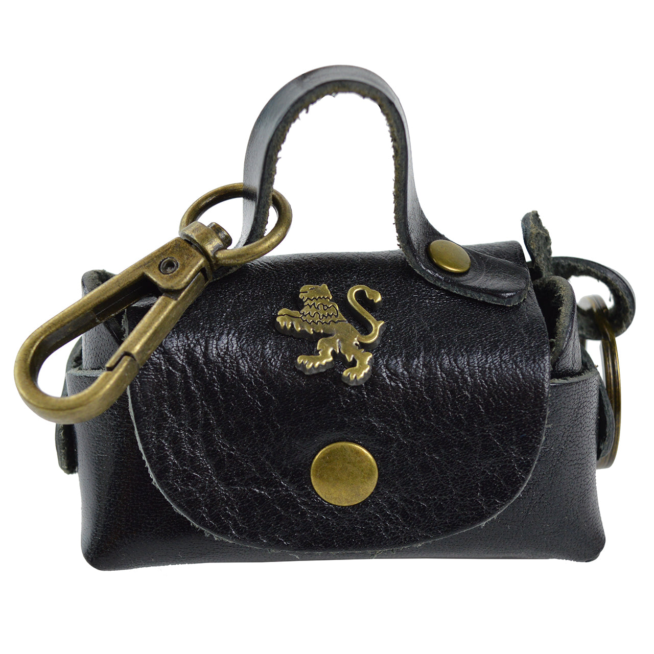 Borsa in miniatura, ad uso portachiavi, ma bello anche come ornamento di zaini, cartelle, astucci e quant'altro. In vera pelle Italiana. Questa antica concia che utilizza solo prodotti naturali (tannino, grasso di sego, ecc.) èunica al mondo e tuttora mai riprodotta. Gli articoli realizzati con questo pellame hanno la caratteristica d'invecchiare con tempo, acquistando giorno per giorno, sempre più fascino. Il primo invecchiamento è stato realizzato da noi, applicando varie cere ed altri prodotti naturali, la cui formula è segreta.