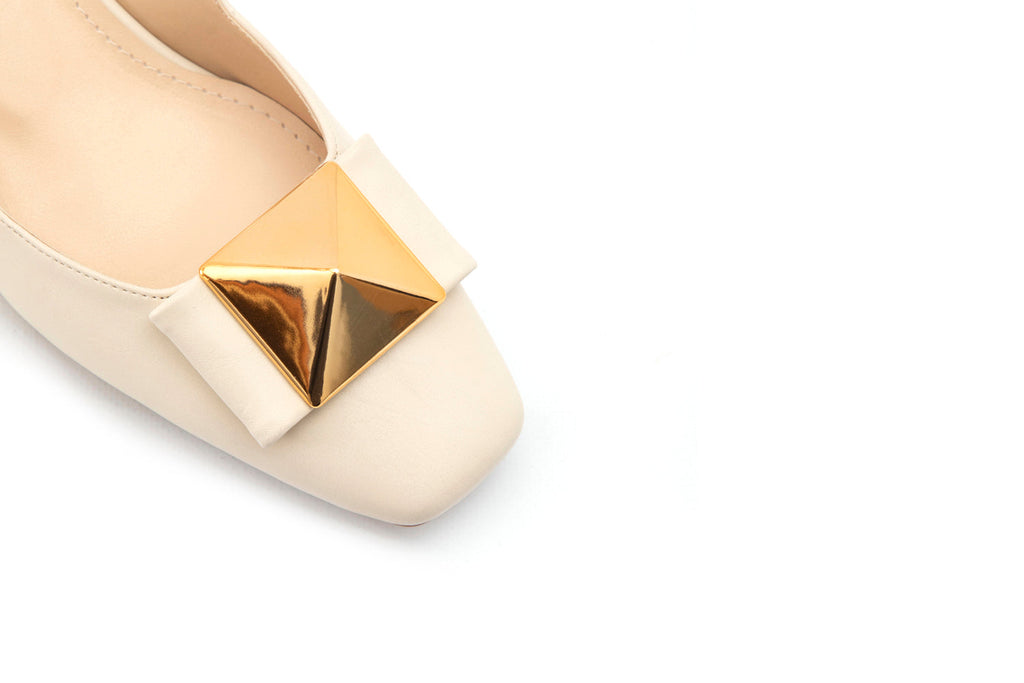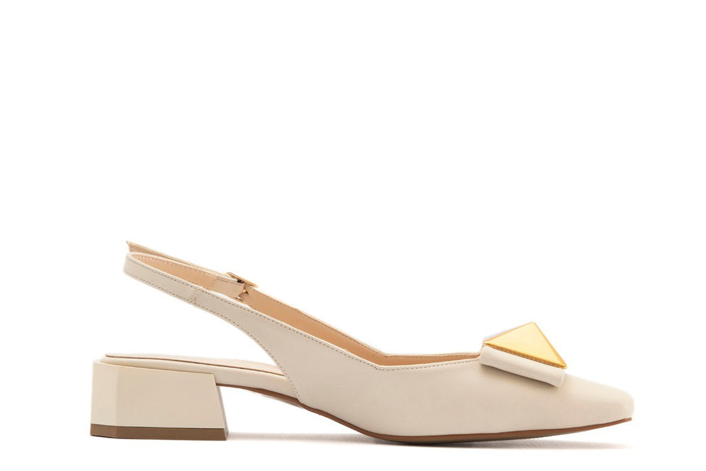 slinback con punta e tacco quadrati con accessorio, laccetto per chiusura con fibbia regolabile, tacco quadrato.