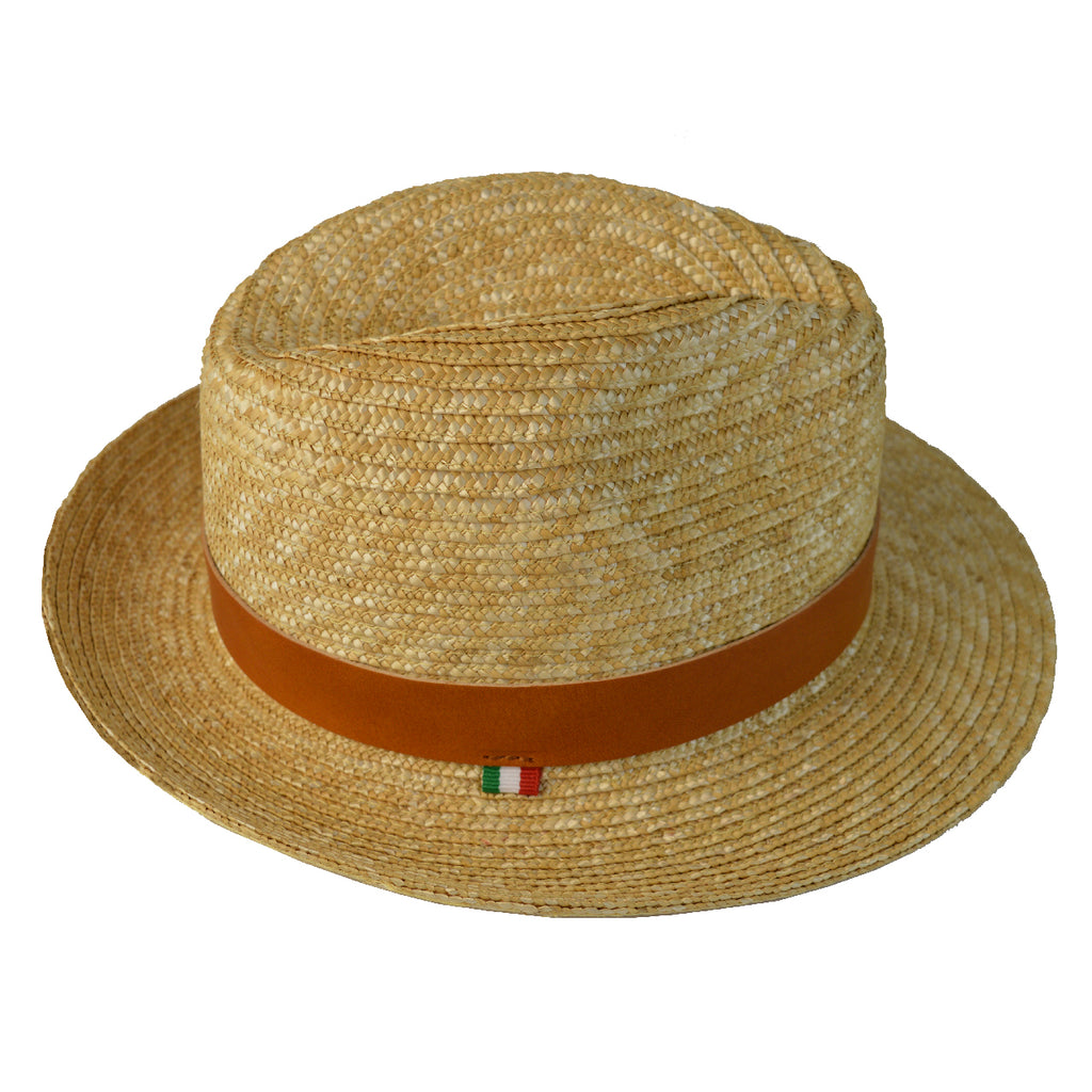 Pratesi Borsal. Cappello Uomo Paglia S204 (59cm) in Paglia Naturale e Vera Pelle - Borsal. Cappello Uomo Paglia S204 (59cm) Cognac
