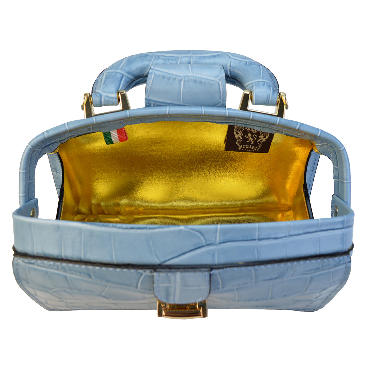 Brunelleschi Mini di Pratesi, in vera pelle Italiana. Realizzata in pelle di vitello certificata, nasce da una lavorazione artigianale al 100%. Questa antica concia che utilizza solo prodotti naturali (tannino, grasso di sego, ecc.) è unica al mondo e tuttora mai riprodotta. Gli articoli realizzati con questo pellame hanno la caratteristica d'invecchiare con tempo, acquistando giorno per giorno, sempre più fascino. Il primo invecchiamento è stato realizzato da noi, applicando varie cere ed altri prodotti naturali, la cui formula è segreta. Preziosa e curata nei minimi dettagli, la borsa a mano Lady Brunelleschi accompagna con eleganza ogni tipo di outfit. Una borsa di classe, completamente Made in Italy firmata dallo storico brand fiorentino Pratesi. Compatta nella sua forma lineare e dai profili asciutti, coniuga classe e versatilità. Lady Brunelleschi, è una Borsetta con un grande scomparto dotato di chiusura a chiave, all’interno, su un lato, vi è una tasca con chiusura a cerniera, sull’altro lato si trova una luce temporizzata. Le parti metalliche sono color oro. Inclusa una tracolla rimovibile, ed una sacca in cotone per riporla. Pratesi, quando la qualità del Made in Italy incontra un design esclusivo e senza tempo, dal 1948. Le borse Pratesi sono disponiblio in moltissimi colori: Nero, Marrone, Giallo, Ciliegia, Chianti, Cognac, Viola, Grigio, Arancione, Verde Scuro, Blu Elettrico, Panna, Caffè, Smeraldo, ed il nuovissimo Pesca.
